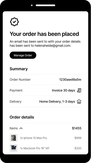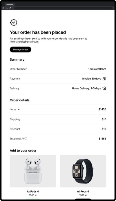 Avarda wanted a confirmation page that gives buyers a complete and reassuring post-purchase experience.