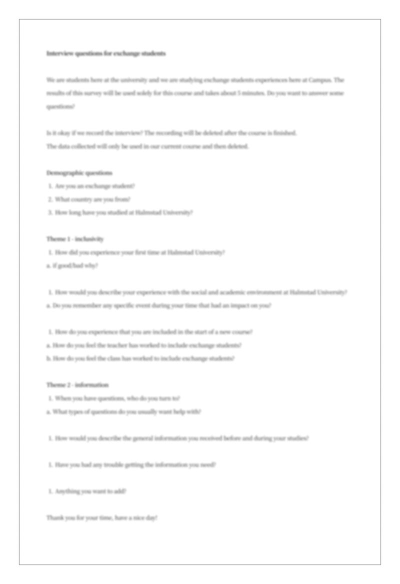 Semi-structured interviews with international students provided insights into their experiences, feelings of inclusion or exclusion.
